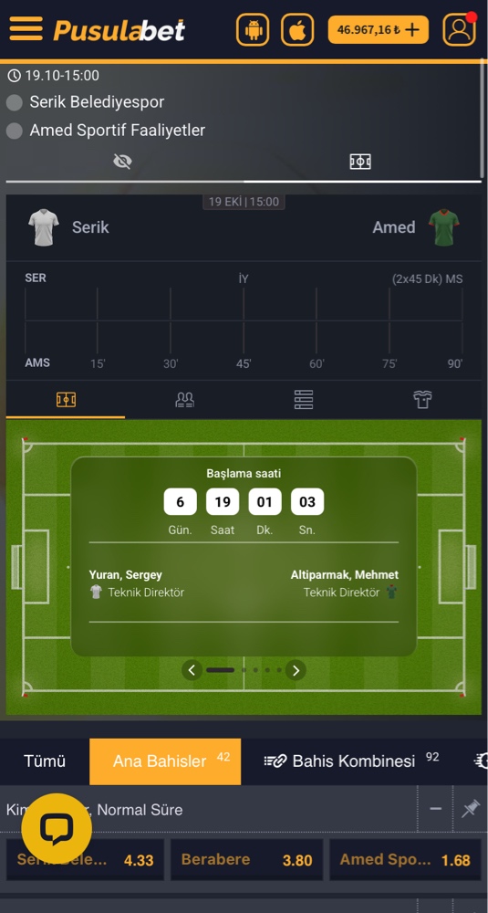 19 Ekim saat 15:00’te Türkiye 1. Ligi kapsamında Serik Belediyespor ve Amedspor takımları karşı karşıya gelecek. Pusulabet bahis sitesi, konuk