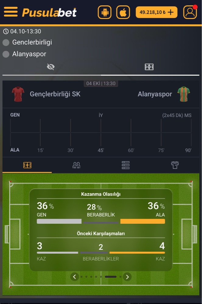 Pusulabet oranlarına göre, bu maçta beraberlik olasılığı %28’dir. Gençlerbirliği’nin galibiyet olasılığı %36 olarak değerlendirilirken, Alanyaspor’un galibiyetine de aynı şekilde %36 ihtimal verilmektedir. Bu durum, bahis şirketlerinin maçı oldukça denk gördüğünü, takımlardan birinin galibiyetine küçük bir avantaj tanınsa da beraberliğin oldukça olası bir sonuç olarak kaldığını göstermektedir.