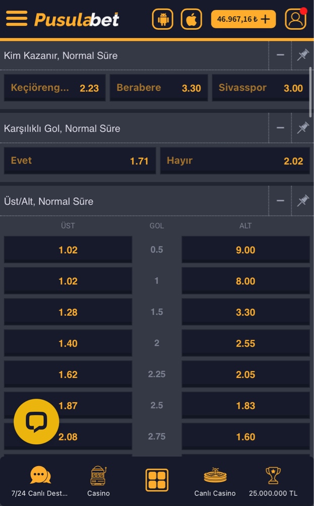 Sivasspor Geçen sezon Süper Lig’den düşen Sivasspor da henüz taraftarlarının beklentilerini karşılayabilmiş değil. Takım, başarılı maçları açıkça zayıf performanslarla birleştiriyor, ancak son form durumları ev sahibine göre biraz daha iyi görünüyor. Pusulabet, konuk ekibin galibiyet şansını 3.00 oranla değerlendirirken, beraberlik için 3.30 oran veriyor.